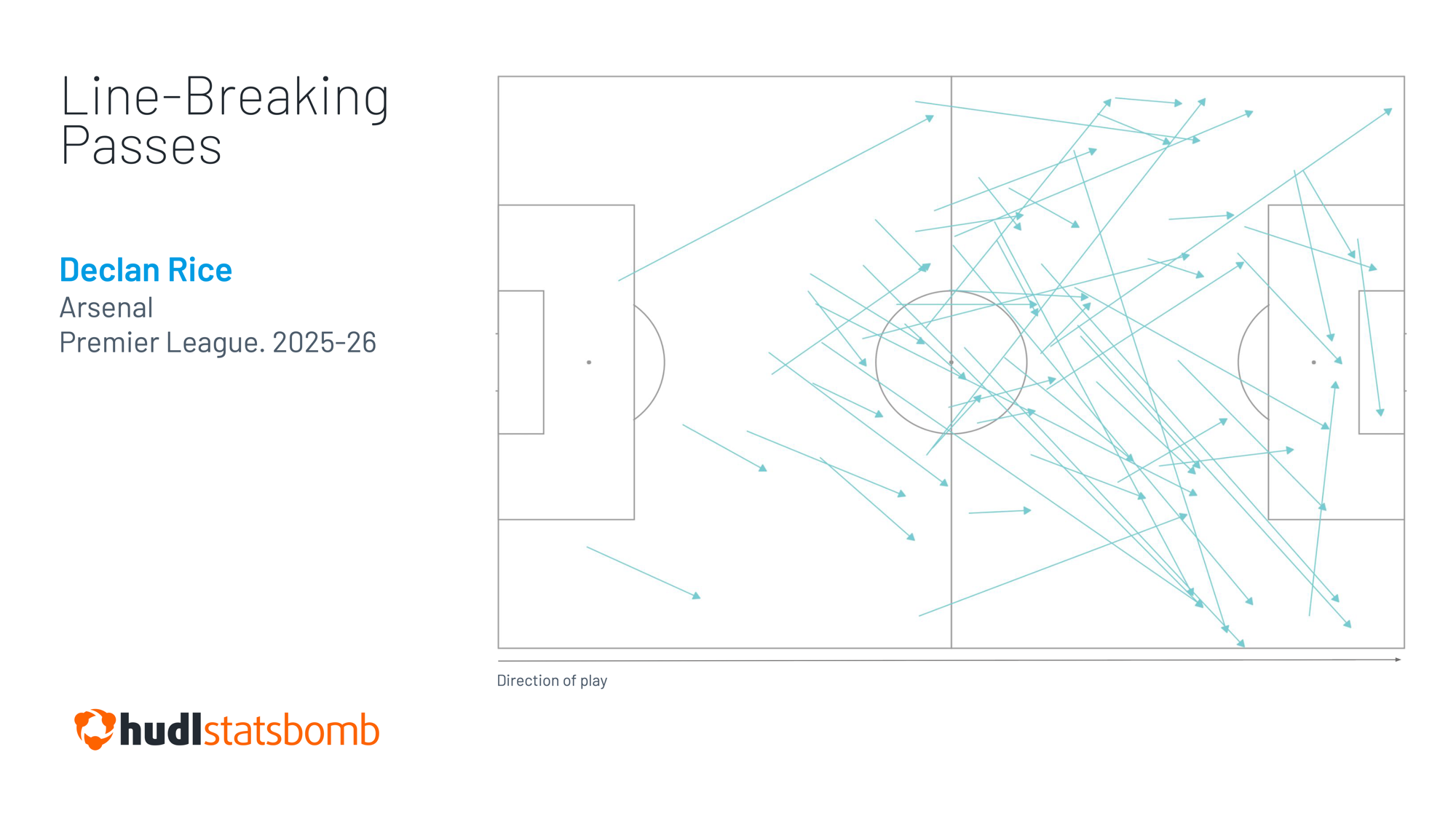 As noted earlier, Rice’s personal contribution has increased to 5.31 line-breaking passes per 90 – a near 40% increase season-on-season.